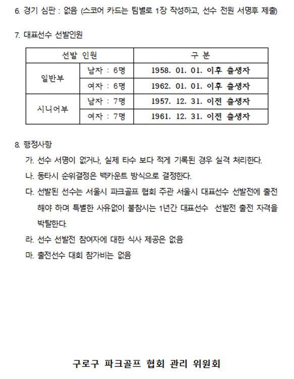 파크골프 대표선수 선발 대진표 안내